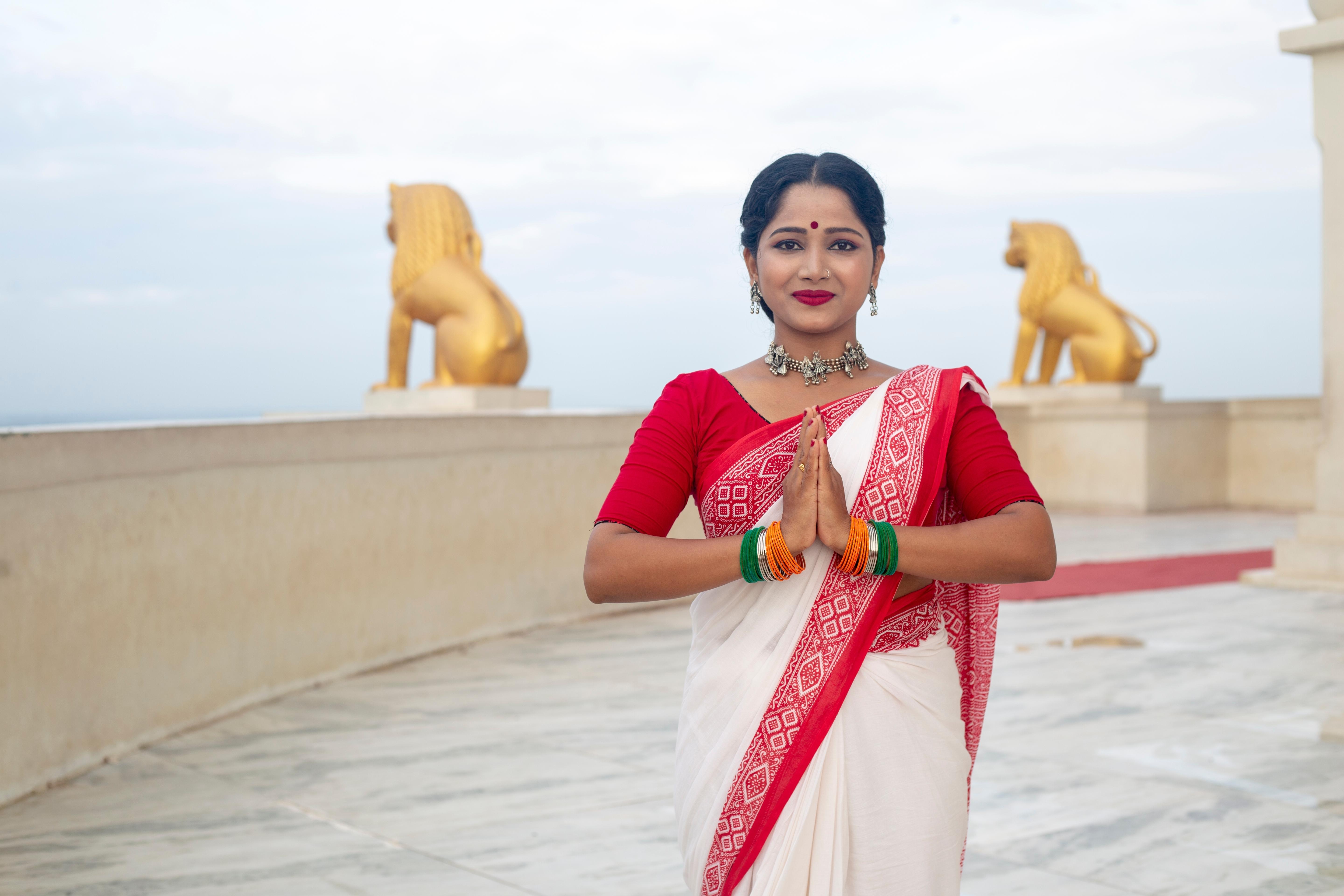 In ähnlicher Weise wird das hinduistische Wort Namaste verwendet, um Respekt und Dankbarkeit in Ländern wie Indien, Nepal und Bangladesch auszudrücken. Das Wort bedeutet aus dem Sanskrit übersetzt "ich verneige mich vor dir". Wenn es auf traditionelle Weise ausgeführt wird, wobei die Hände wie im Gebet vor dem Herzen zusammengelegt sind, handelt es sich um eine Verbeugung.