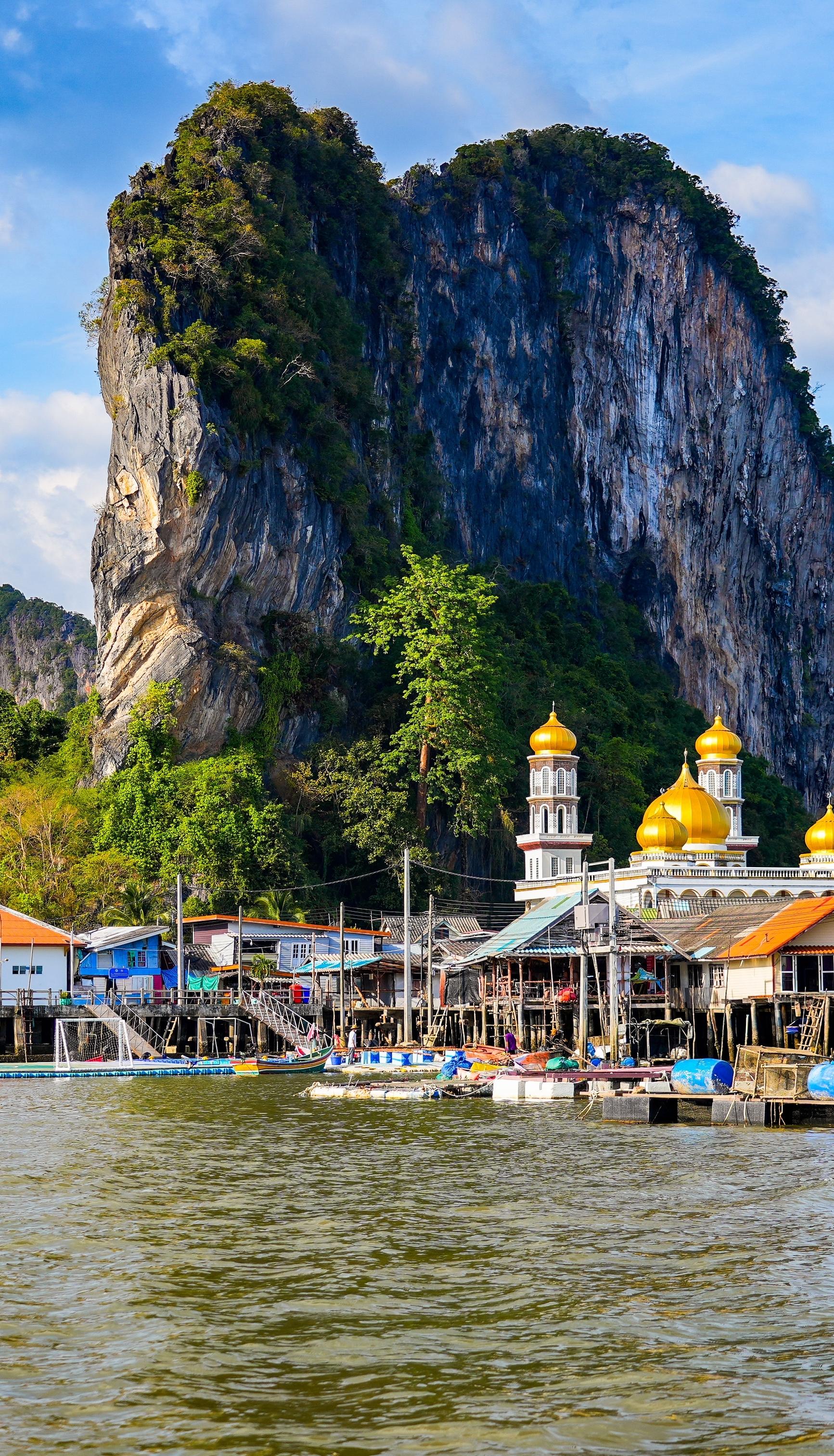 Malaysische Fischer zogen im 18. Jahrhundert in die Bucht von Phang Nga. Als Fremde durften sie allerdings kein Land kaufen - die Nomaden waren erfinderisch und bauten einfach ein Dorf auf Stelzen im Meereswasser. Heute leben hier über 1.600 Muslime.