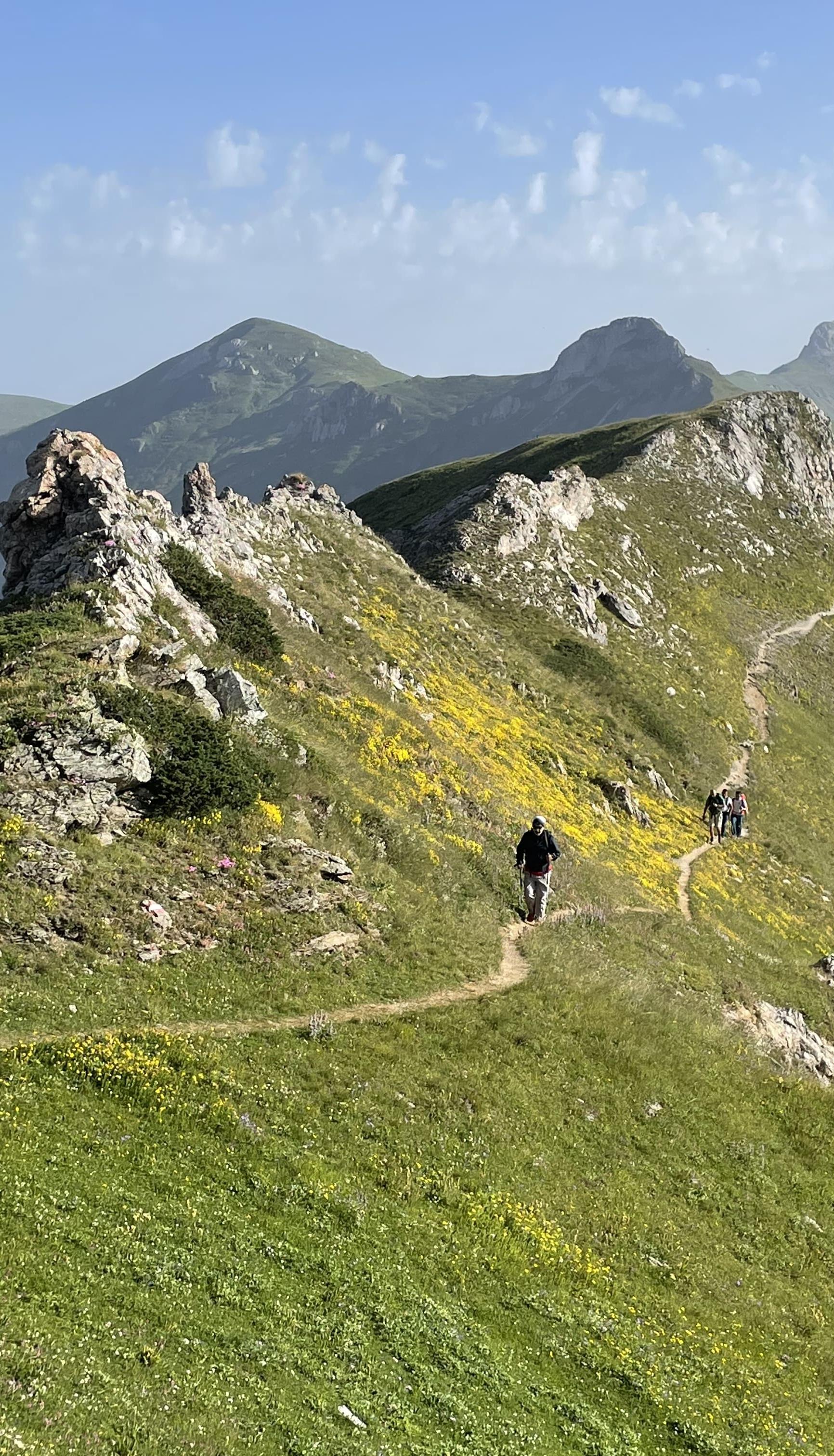 "Kosovo hat Glück, weil wir zwei imposante Bergketten haben", fährt Ibrahimi fort, "wir sind ein Volk mit Abenteuern in den Knochen." Die Gruppe Wanderer blickt vom Gipfel über Albanien und Montenegro. Ihre Bergführerin weist auf die Shar-Berge im Westen. Dort teilt sich der Kosovo eine Grenze auf der Kammlinie mit Mazedonien. "Dort im Westen sin die Berge noch höher, und dort liegt auch das Skigebiet Brezovica", erklärt sie.