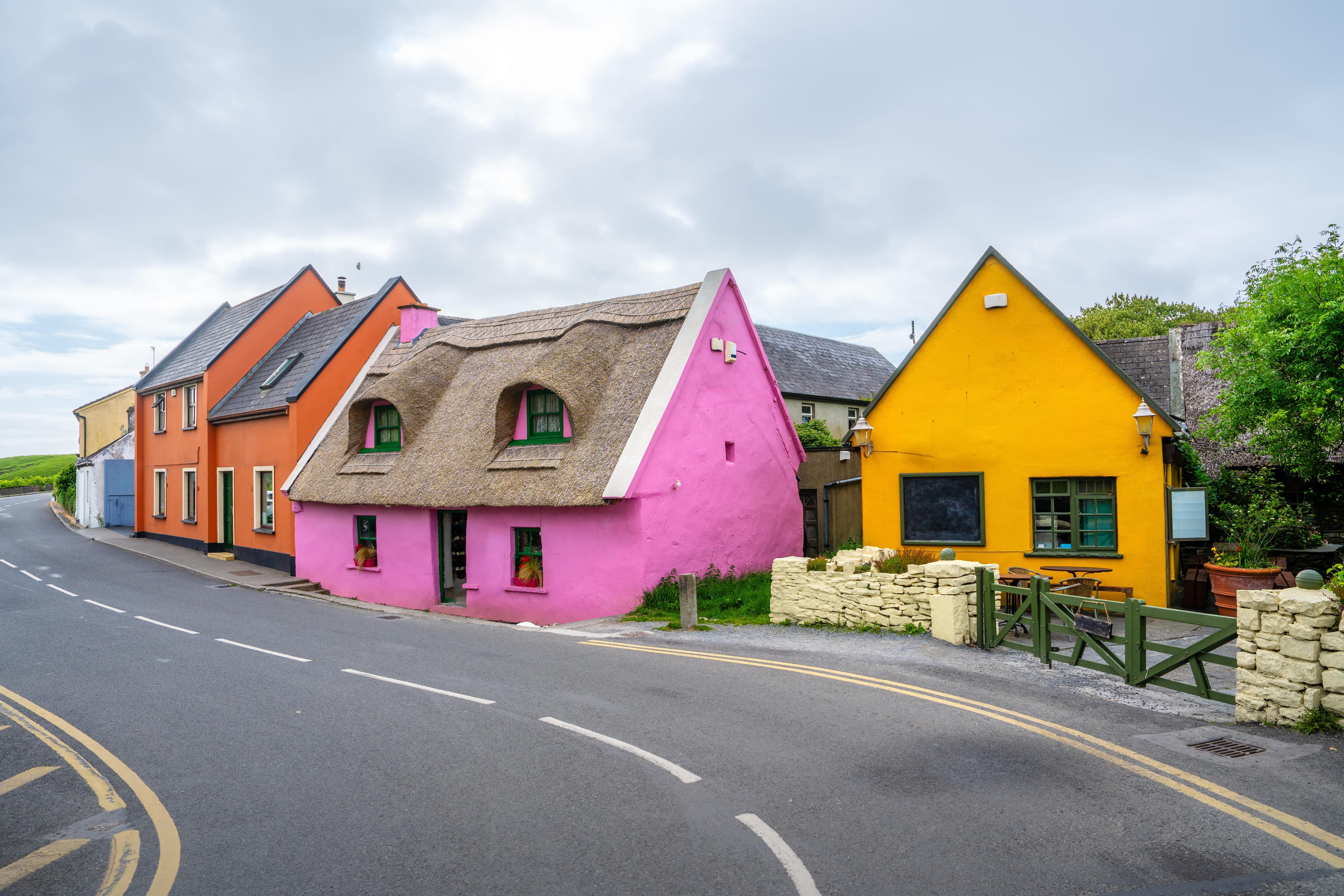 Eine Reise wert ist die Dingle-Halbinsel in der Grafschaft Kerry mit ihren postkartengleichen Ausblicken auf sandige Strände und karibikblaue Buchten. Das charmante Fischerdorf Dingle mit seinem Gewirr aus Straßen und Gassen voller Kunst- und Handwerksläden, Cafés und altmodischen Pubs lädt zum Schlendern ein. Fangfrischen Fisch bieten täglich die ausgezeichneten Restaurants des Örtchens.