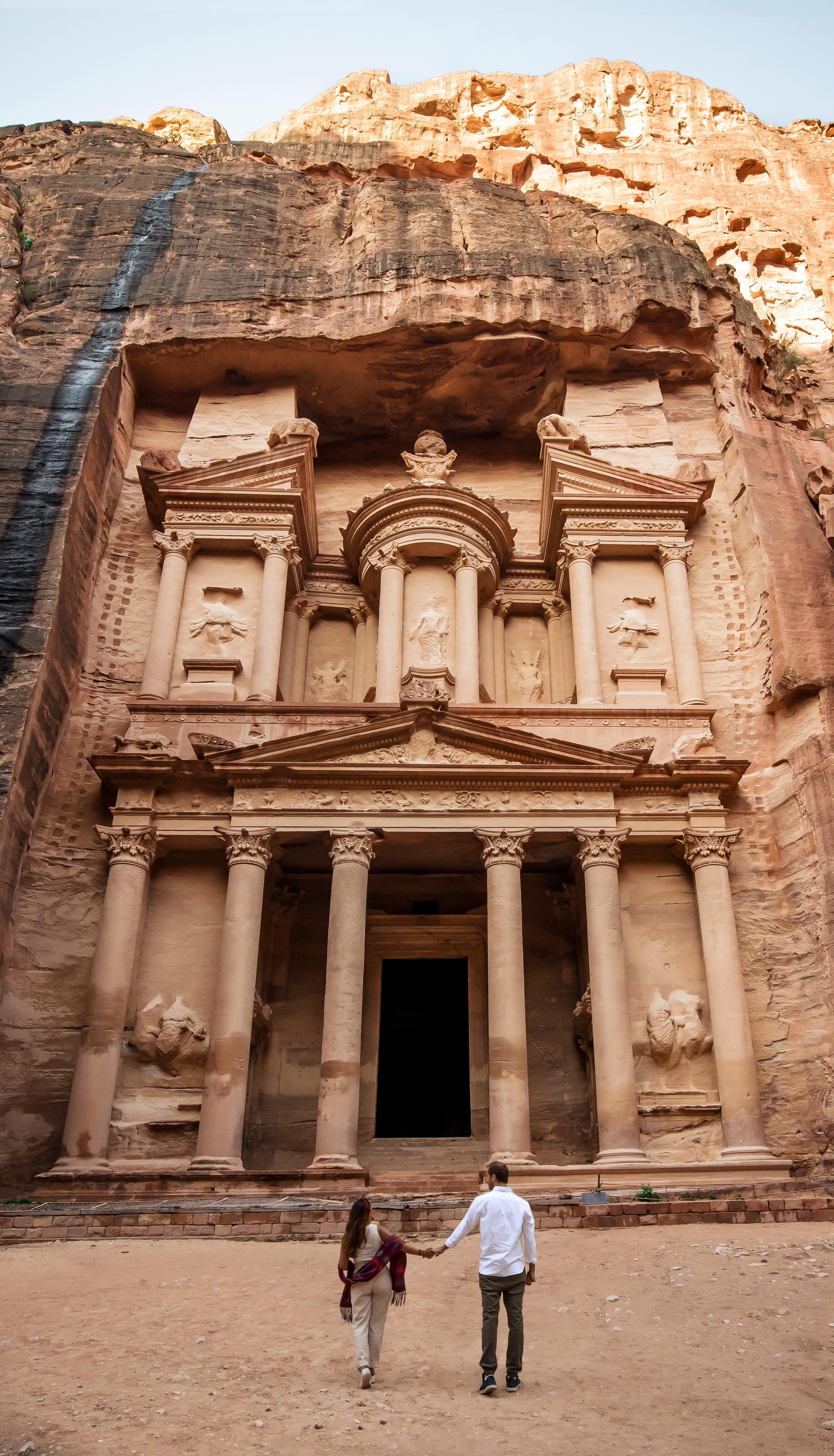 Die magische Stadt Petra, die in der Zeit um 300 v. Chr. von Hand in den rosafarbenen Sandsteinfelsen geschlagen wurde, ist Jordans beliebteste Attraktion und steht auf der Bucket List von Reisenden auf der ganzen Welt. In trauriger Ironie leidet dieses einst streng gehütetes Beduinen-Geheimnis, dessen Aufenthaltsort mehr als 1.000 Jahre lang der westlichen Welt unbekannt war, mittlerweile an Overtourism.