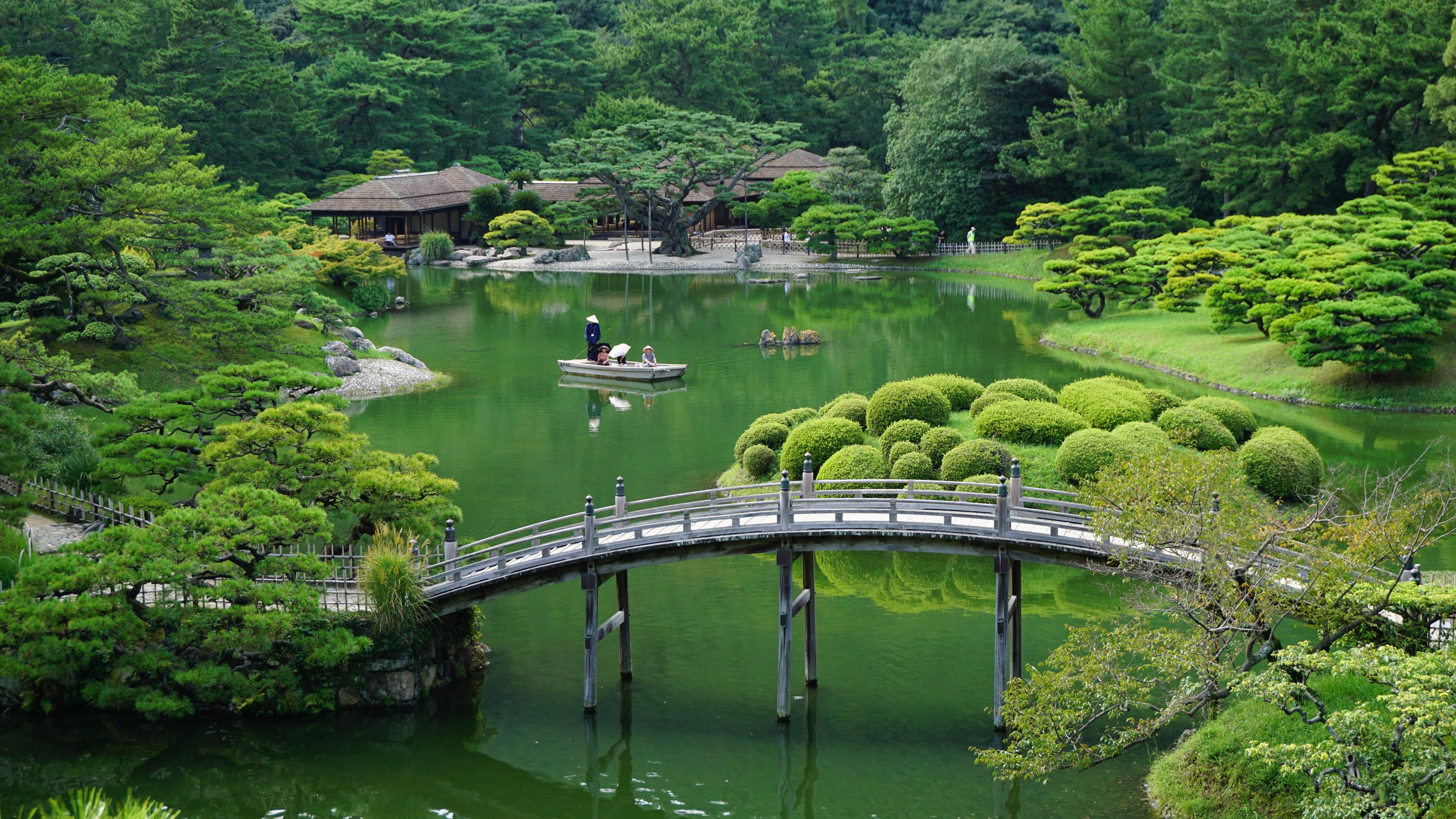 Auch die Präfektur Kagawa, die landesweit für seine Bonsai-Kultur und dicken Udon-Nudeln bekannt ist, hat dem Besucher jenseits der Pilgerwege viel zu bieten. Der weitläufige Ritsurin Garten in Takamatsu lädt zu einem beschaulichen Spaziergang ein. Ursprünglich wurde der Garten vor fast 400 Jahren für den lokalen Feudalherren angelegt. Heute ist er als wichtiges Kulturgut anerkannt. Er besteht aus sechs Teichen und dreizehn landschaftlich gestalteten Hügeln vor der grünen Kulisse des Berges Shiun. Saisonale Blumen und eintausend sorgfältig gepflegte Pinienbäume schaffen eine prächtige Landschaft, die sich im Laufe der Jahreszeiten verändert, sodass sich ein Besuch zu jeder Zeit lohnt.