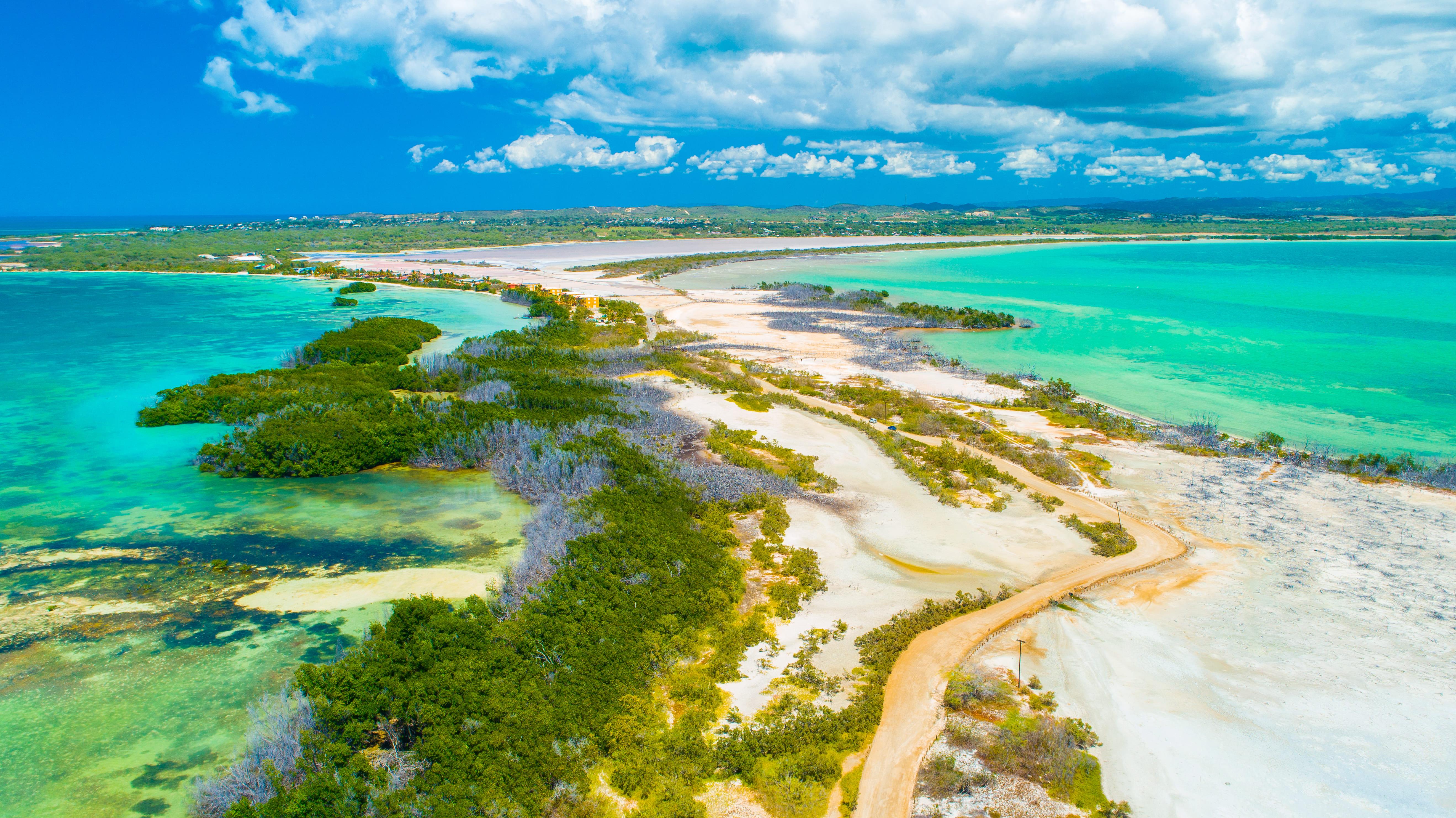 Eine holprige Fahrt über unbefestigte Straßen entlang der rosafarbenen Salzseen von Corozo und durch das Naturschutzgebiet Cabo Rojo führt schließlich zu einer weiten Sandfläche, die von hervorragenden Aussichten flankiert wird. Der Leuchtturm von Cabo Rojo, die Kalksteinklippen und das türkisblaue Wasser des karibischen Meeres bilden eine unvergessliche Kulisse.