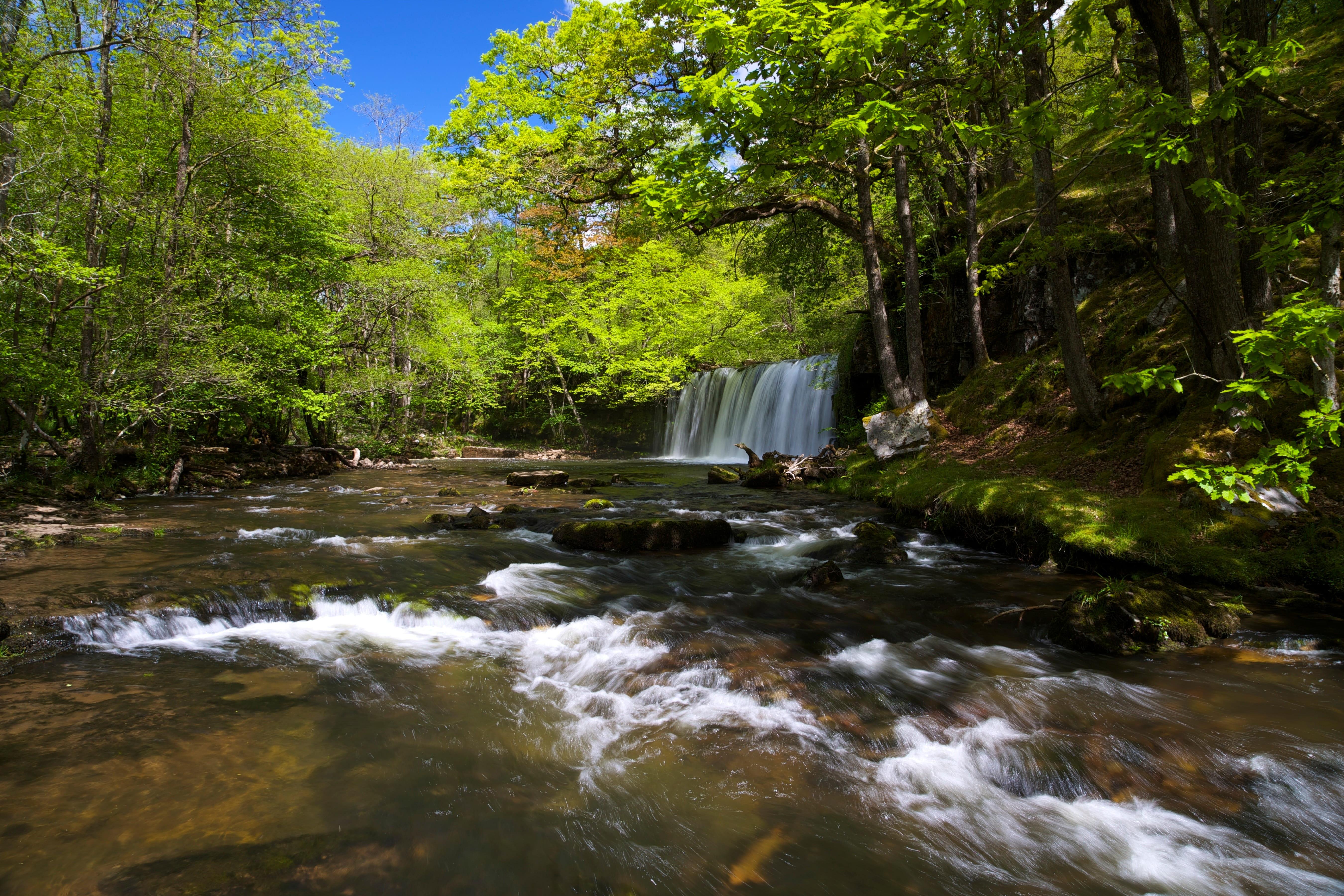 Er taucht tief in einen dichten Kiefernwald und eine farnartige Schlucht, die wie ein Märchen wirkt, ein. Stufen und Stege führen zu einer Reihe von Wasserfällen. Der beeindruckendste davon ist der Sgwd-yr-Eira, der Wasserfall des Schnees, hinter dem man entlang laufen kann. Wer früh morgens aufbricht, hat die Wasserfälle noch ganz für sich.
