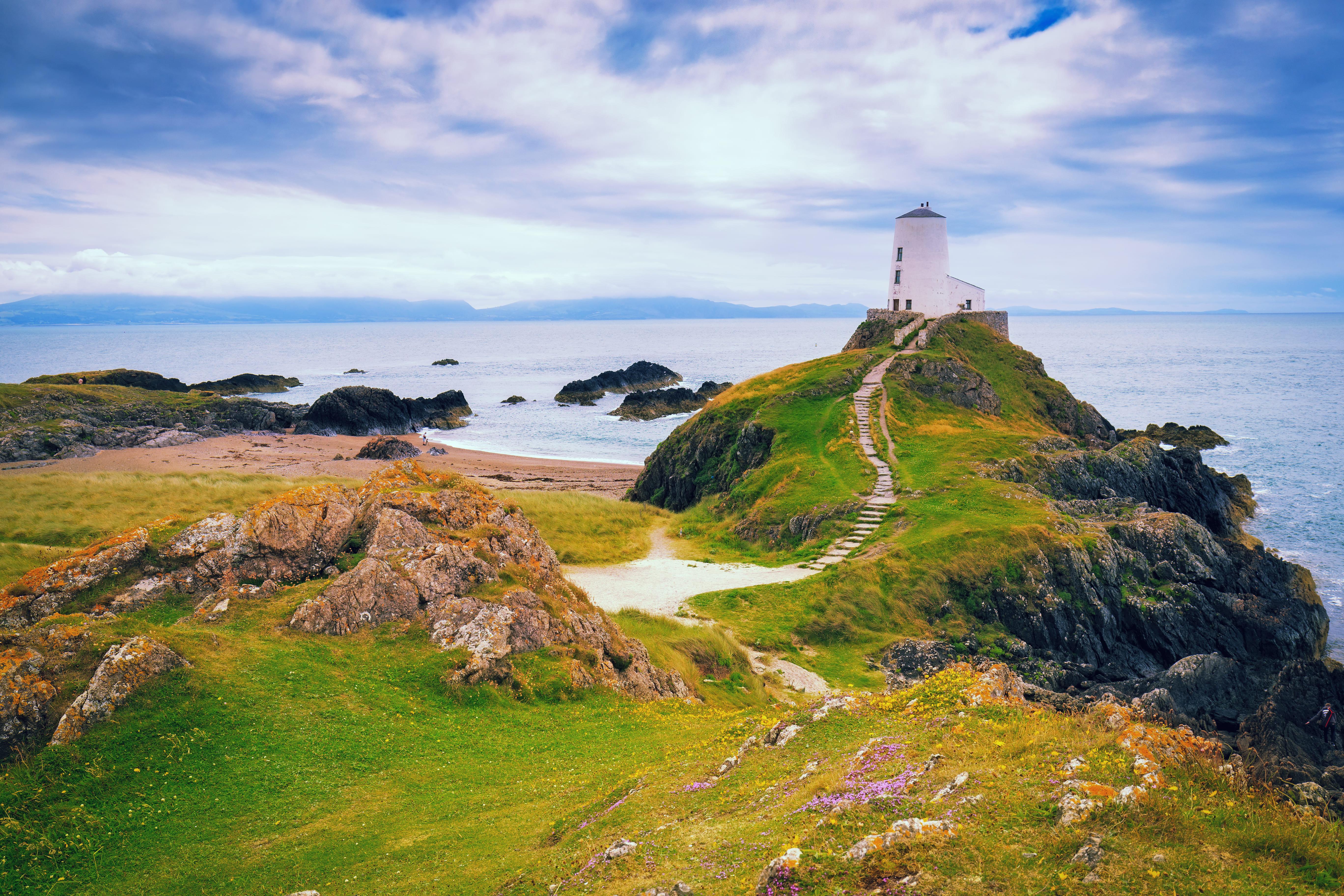 Wenn man sich jemals Hals über Kopf in die walisische Küste verliebt, dann sicherlich in Llanddwyn auf Anglesey, mit seinem weiten Himmel, den herrlichen Sandstränden und dem malerischen Licht. Die romantischen Ruinen der St. Dwynwen's Church ziehen seit Jahrhunderten Pilger an. Sie werden mit St. Dwynwen in Verbindung gebracht, dem walisischen Schutzpatron der Liebenden, einer Art walisischem St. Valentin.