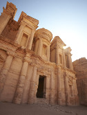 Zurück im Tal führt ein mindestens genauso mühsamer Weg zum größten Monument Petras. Am Ende der Kolonnadenstraße gelangt man über eine riesige Steintreppe mit 788 Stufen nach rund einstündiger Wanderung zum 50 Meter breiten und 39 Meter hohen Ed-Deir, dem „Kloster“, das, wie schon das „Schatzhaus“, gar keins war. 2004 wurden zwei verschüttete Steinbänke entlang der Saalwände entdeckt, die vermuten lassen, dass Ed-Deir das Mausoleum eines Herrschers war und hier Totenfeiern abgehalten wurden. Eine Inschrift legt einen Bezug zum nabatäischen König Obodas I. nahe, der etwa von 96 bis 85 v. Chr. regierte. Es wird vermutet, dass Christen im 4. Jahrhundert n. Chr. das verlassene Petra vorübergehend besiedelten und das Grab als Kloster nutzten, was ihm den Namen gab.