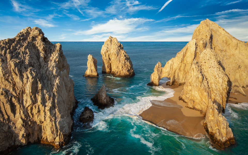 Nur wenige Orte auf der Welt bieten so dramatische Landschaften wie Los Cabos. An der äußersten Spitze der Halbinsel Baja California Sur erstreckt sich die Wüste bis zum Horizont, bevor sie abrupt in das tiefe Blau des Pazifiks und des Golfs von Kalifornien abfällt. Das Ergebnis ist ein Panorama voller Gegensätze: zerklüftete Klippen im Widerstand gegen die Brandung, Kaktusfelder im goldenen Abendlicht und Sonnenaufgänge, die die gesamte Küste in warme Pastelltöne tauchen.