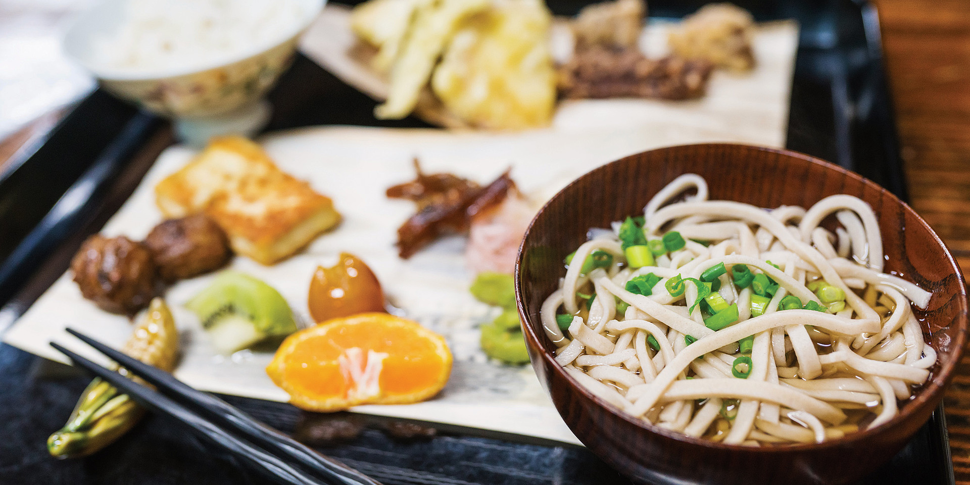 Im Herzen Shikokus, eingerahmt von Bergen und Tälern, erlebst du nicht nur eine friedliche Gemeinschaft, sondern ebenso nachhaltige Anbaumethoden. Wegen ihnen werden die einmaligen natürlichen Beschaffenheiten auch heute noch aufrechterhalten. Das Mulchen von Nahrungspflanzen zum Beispiel basiert auf ganz natürlichen und organischen Prozessen – und den Unterschied zu konventionellem Obst und Gemüse kannst du schmecken! Genieße zum Mittagessen die regionale Küche mit Soba und Gemüse des Bauern von nebenan, lerne den nachhaltigen Lebensstil und das Besondere am langsamen Leben in Shikoku schätzen. Ebenfalls schätzen solltest du den fabelhaften Geschmack der Kakis, die du 40 Minuten von Onomichi entfernt auf der Spitze eines Berges findest. Einfach reinbeißen und Ausblick genießen – mehr geht nicht!