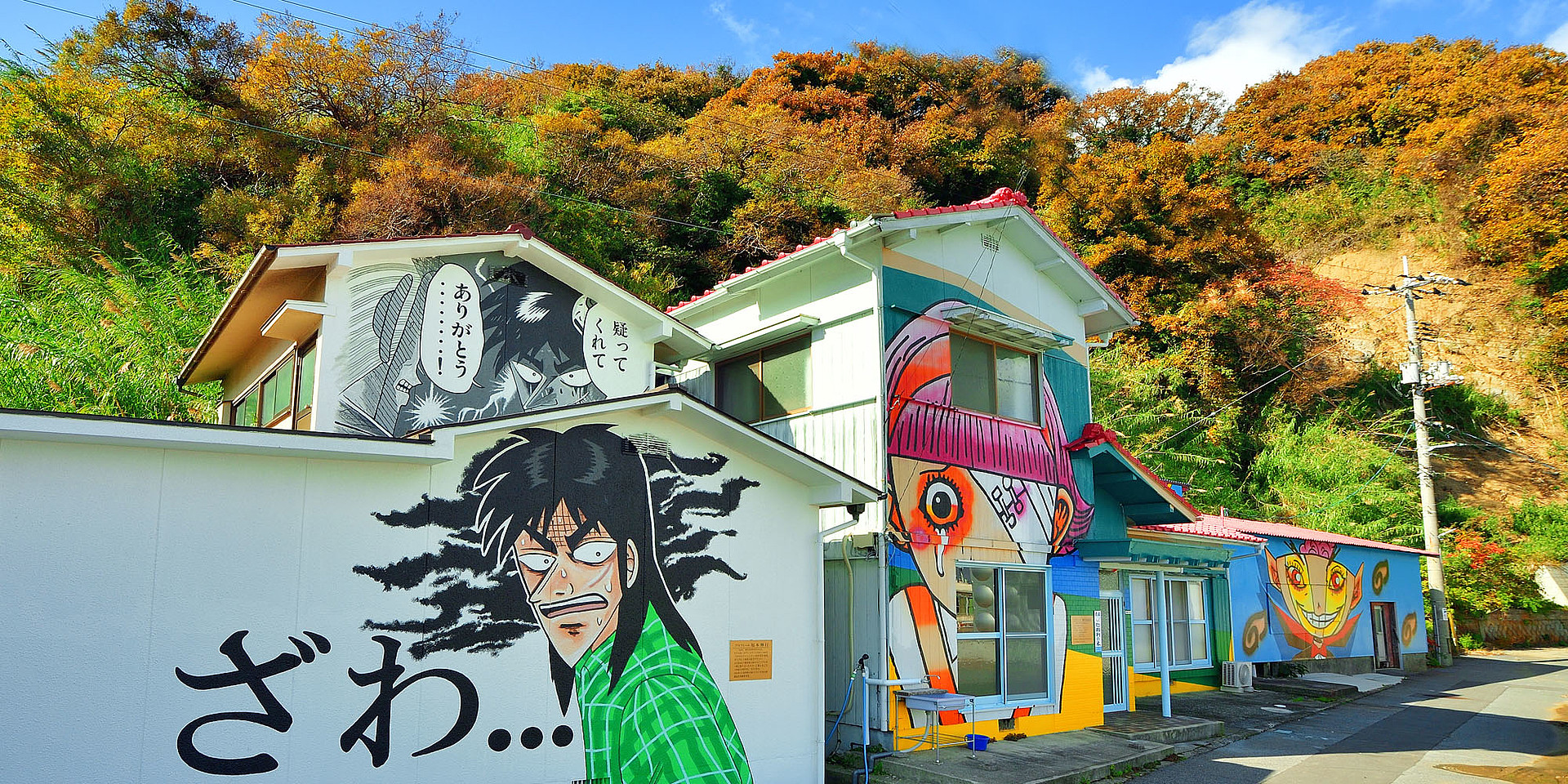 Ein Geheimtipp für alle Kunstliebhaber ist die „Art Base Momoshima“. Auf der kleinen Insel Momoshima, die nur eine kurze Fährfahrt von Onomichi in Hiroshima entfernt ist, findest du in einem alten Schulhaus eine Galerie permanenter und temporärer Künste. Diese entstand nach der Idee von Yukinori Yanagi, der auch für seine Arbeit auf Inujima, einer anderen Kunstinsel vor der benachbarten Präfektur Okayama, bekannt ist. Dort sind jeweils drei bis 15 ortsansässige Künstler zugegen. Eine der dort beherbergten, umfangreichen Arbeiten Yunagis ist „Project: Red, White and Blue – Wandering Mickey“. Es stellt die Massenkonsumgesellschaft dar – und regt zum Nachdenken an.