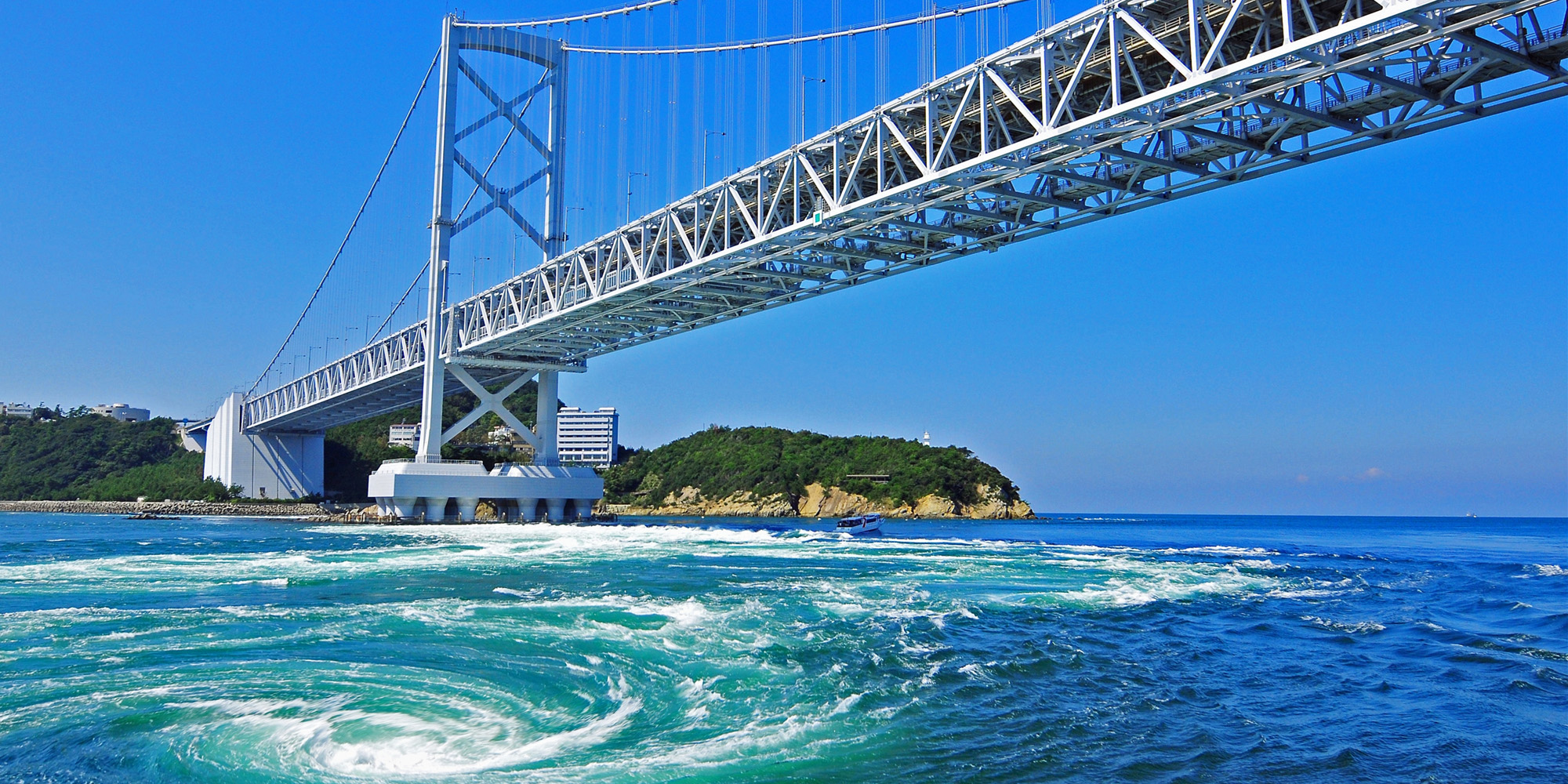 Lass es dir auch nicht entgehen, entlang der Naruto-Straße auf dem „Kanrin Manu“, einem japanischen Kriegsschiff, die faszinierenden Ozean-Strudel zu umrunden. Sie sind eines der japanischen Naturwunder! Mit Blick auf die majestätische Onaruto-Brücke, zwischen der Insel Awaji in der Präfektur Hyogo und der Stadt Naruto in Tokushima, liegt das Naturschauspiel, das sich eigentlich ganz leicht erklären lässt: Das Phänomen tritt auf, wenn sich entgegengesetzte Strömungen aus dem Seto-Binnenmeer und dem Kii-Kanal in der Naruto-Straße treffen. So klar die Logik, so toll der Blick darauf!